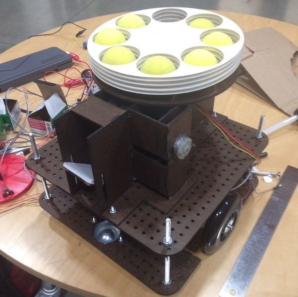 We designed and built an autonomous, Arduino-powered robot to compete against other robots. The robot had to launch foam balls into goals on the other side of an arena. Our bot used several ultrasonic and infrared tape sensors to align itself with the goals.
